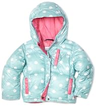 Squishy soft and cozy warm, this puffy jacket gives little girls (and their moms) plenty of room for stashing stuff. the lustrous nylon shell features omni-shield® advanced repellency to shed rain, spills and stains. lofty faux down insulation and fleece lining at the center back provide maximum warmth with minimum care; other cool features include adjustable cuffs, adjustable storm hood, and interior security pocket. best of all, an ingenious “mom pocket” on the back provides tons of storage and easy access for mittens, hats and other small accessories.